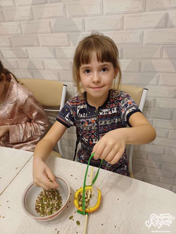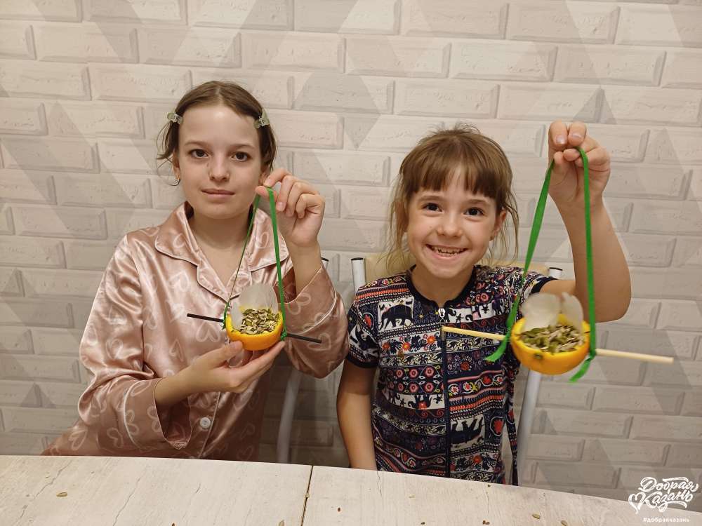 Добрые дела Кормушка из апельсина Кормушка из апельсина наша последняя «съедобная» кормушка сделана из апельсина. Его нужно разрезать пополам, убрать мякоть и полость заполнить семечками. Проще простого! Не забываем про шпажки, чтобы птички смогли сесть и полакомиться. Фотогалерея: Категория: Забота о животных — 07.04.2026 7 Юлиана Калмыкова Комментарии Комментарии Нет комментариев. Ваш будет первым! Войдите или зарегистрируйтесь чтобы добавлять комментарии