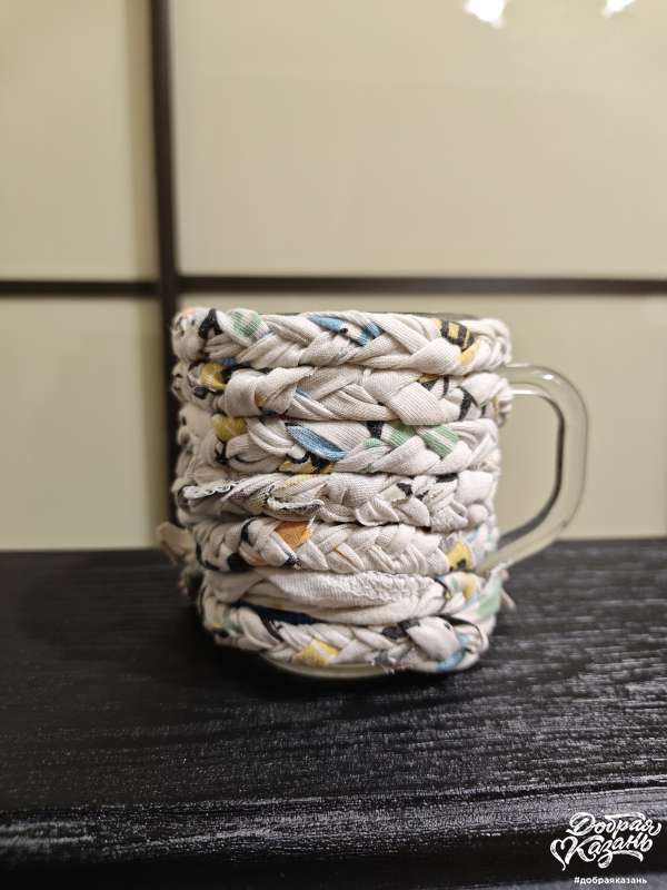 5 — из старой футболки я сделал одежду для моей любимой чашки для ее защиты
