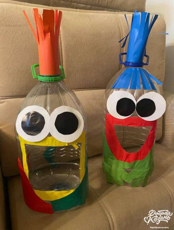 6 — игрушка из пластиковой бутылки для игры с мячом