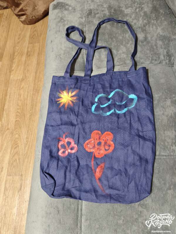 2 — из хлопчатобумажной ткани сделали экосумку и раскрасили ее